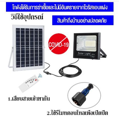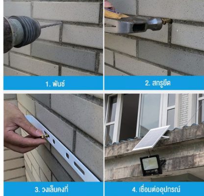 ·ต่อสายไฟของแผงโซล่าเซลล์ เข้ากับ สายไฟของดวงโคม ยึดตัวโคมและแผงด้วยชุดติดตั้งที่มาพร้อมกับดวงโคม ใช้รีโมตในชุด ติดตั้ง ตั้งเวลาเปิดปิดหรือตั้งอัติโนมัติได้