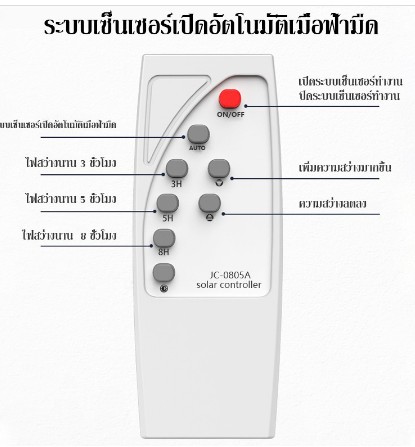 หมายเหตุ* แสงไฟอาจจะมีชั่วโมงการทำงานในเเต่ละวันเเตกต่างกันขึ้นอยู่กับเเสงอาทิตย์ที่เเผงโซล่าเซลล์ได้รับ